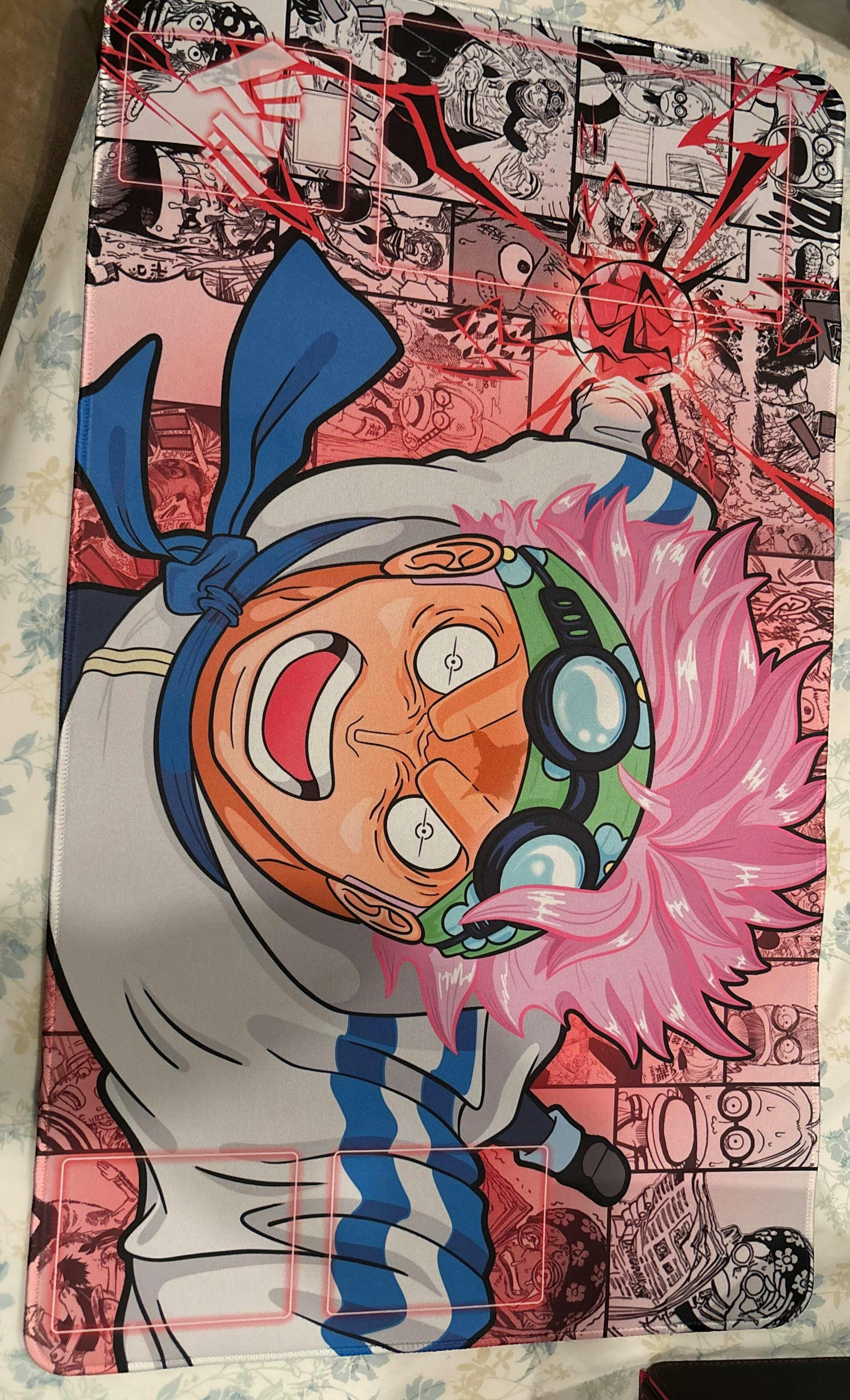 This One Piece playmat is perfect for both TCG games and as a mouse pad, with a size of 60x35cm and a thickness of 3mm. It features a smooth and defined surface,stitched edge, natural rubber material, and microfiber waving texture, and is easy to roll and carry..